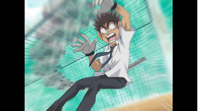 第44話 アハーハー! ボクデビュー!!/賊学カメレオンズとの練習試合が決定!ついに自分が試合デビューすると時が来たと張り切る瀧であるが、デビルバッツのメンバーとして認められただけで、実は未だに泥門高校に入学したわけではなかった。編入試験は賊学戦の前日。瀧を合格させようと奮闘するセナ達に対し、当の本人は全く危機感がなく超余裕。【提供:バンダイチャンネル】