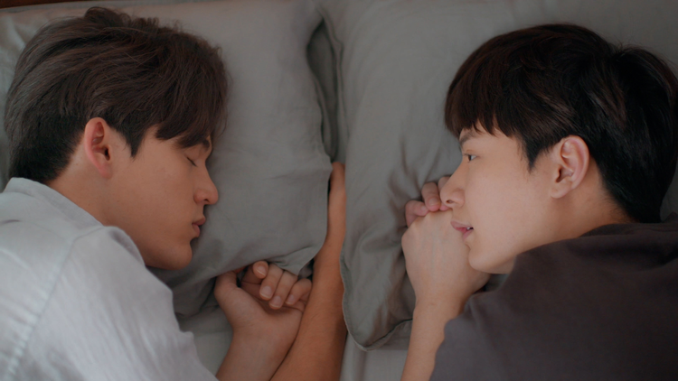 字幕/第2話/過去にタイムスリップしたことに気づかないガウィは、自由気ままに振る舞い、大嫌いだったピーセーンとも打ち解けていた。翌朝、目を覚ましたガウィは自分が過去に戻っていることにようやく気づく。ガウィは未来をよくするために過去をやり直そうと考え、手始めにプレーに自分が秘密のバディであったことを打ち明けることに。