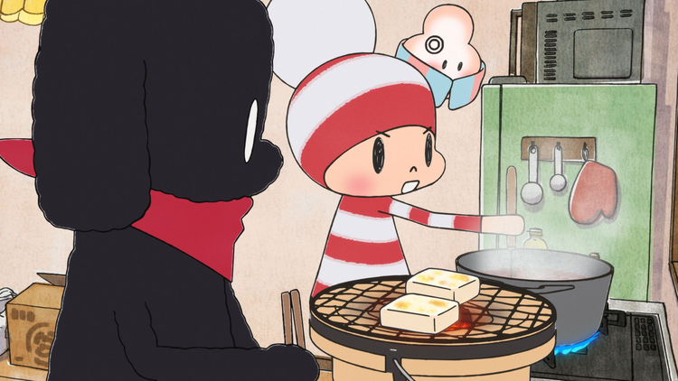 第22話/震えるような寒い日、オチビサンたちは家でおしるこを作っている。おしるこを強火で煮たら焦げてしまうのではないかとナゼニに言われても、オチビサンは、今日はとびきりに寒いからあつあつのおしるこを作るのだとかたくなに煮続ける。ところが、おしるこが出来上がった途端、オチビサンはなぜか外へ駆け出してしまう/ほか3エピソード【提供:バンダイチャンネル】