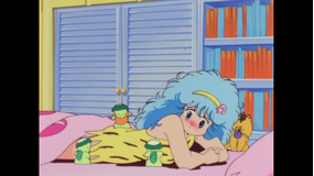 第4話 キスは恋のABC/学に好意を寄せる真鍋よよ子は、学と力と妙に親しいペルシャの存在が気がかりだ。よよ子はペルシャに学と力のどちらが好きなのかと詰め寄るが、ペルシャにはどちらが好きなのかわからない。するとよよ子は将来結婚する相手ならキスをした途端にくしゃみをするという、キス占いのことをペルシャに教える。【提供:バンダイチャンネル】