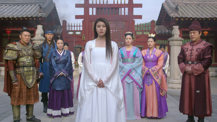 字幕/第6回 偽りの証言/ヨンチョルは皇太子タファンの死の責任を問い、高麗王ワン・ユを廃位にし、元に連行して裁くと宣告。そんな中、スンニャンが死人を装ったタファンの入った棺を宮殿に届けることに成功し、遺体発見の知らせが入る。集まったヨンチョルたちの前で、スンニャンが突然「皇太子は生きている」と告げると、タファンが起き上がり…。